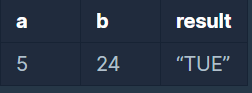 각각 SUN,MON,TUE,WED,THU,FRI,SAT입니다. 예를 들어 a=5, b=24라면 5월 24일은 화요일이므로 문자열 TUE를 반환하세요.