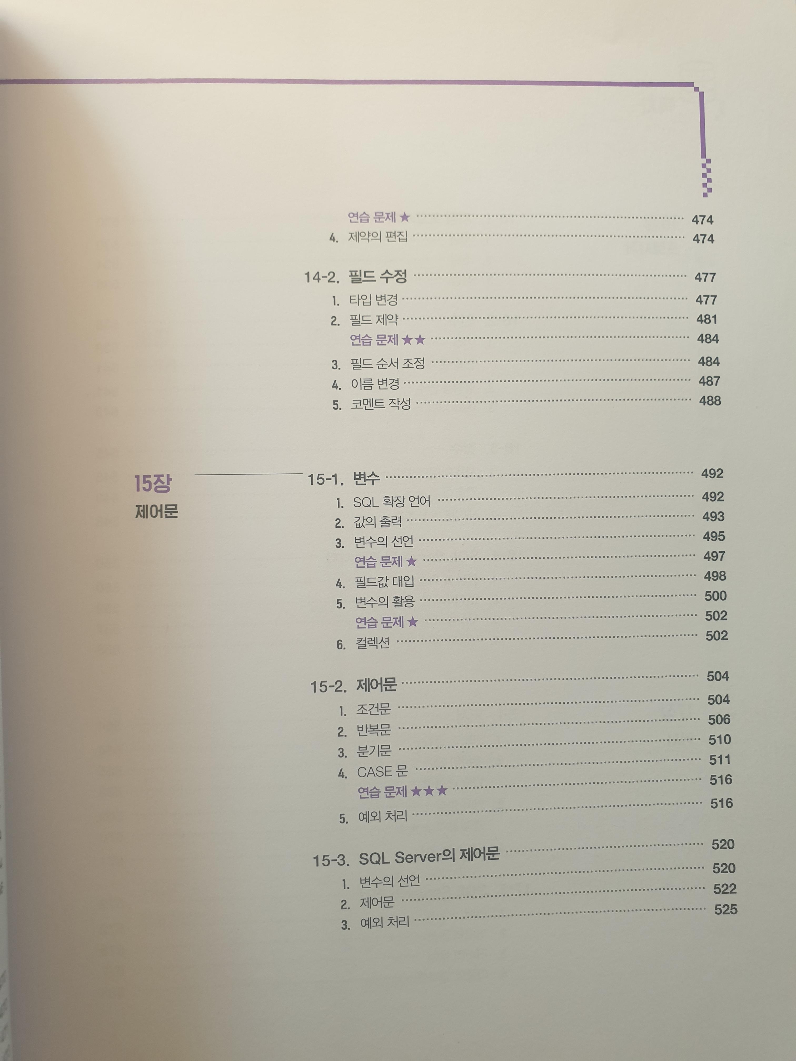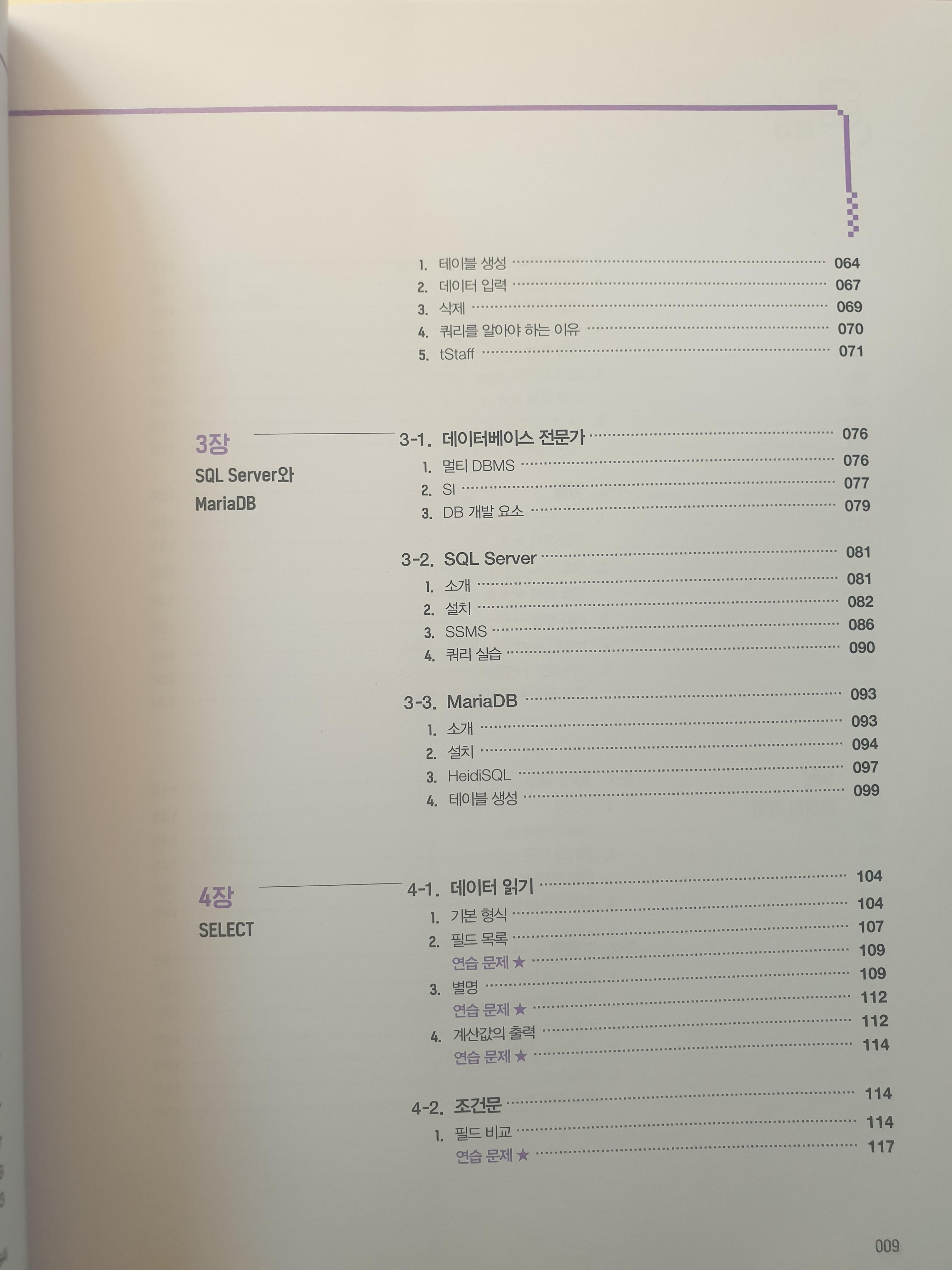 책의 구성은 위 사진과 같이 기본적인 것부터 시작해 점점 깊게 들어가는 흐름입니다. 이 책은 Oracle뿐만 아니라 MSSQL, MariaDB에 대해서도 서술이 되어있기 때문에 1석 3조의 효과도 얻을 수 있겠네요