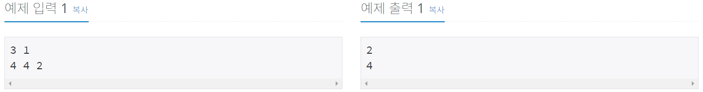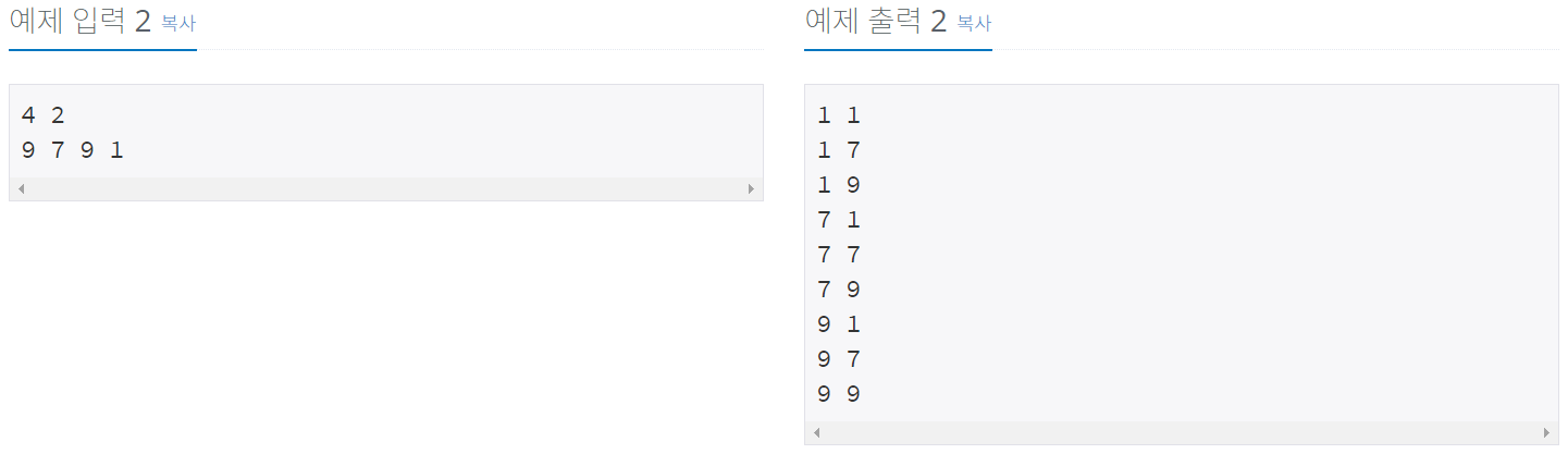 첫째 줄에 N과 M이 주어진다. (1 ≤ M ≤ N ≤ 7)